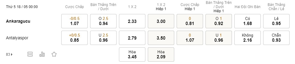 Soi kèo hiệp 1 Ankaragucu vs Antalyaspor: 0.81*0*1.07