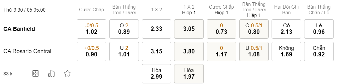 Soi kèo hiệp 1 Banfield vs Rosario Central: 0.73*0*1.17