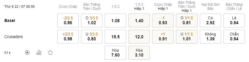 Soi kèo tài xỉu Basel vs Crusaders: 1.02*3/3.5*0.80