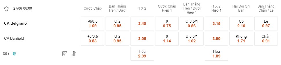 Soi kèo châu Á Belgrano vs Banfield: 1.09*0/0.5*0.83