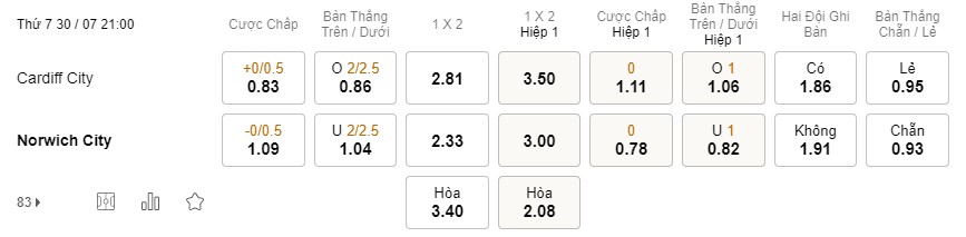 Một thống kê hết sức đáng chú ý đó là 3 lần gần nhất Cardiff vs Norwich gặp nhau, NHM đã có tới 2 lần chứng kiến ít nhất 3 bàn thắng được ghi mỗi 90 phút. Vì vậy, một số trang truc tiep bong da hd nhận định trận đấu tới sẽ tiếp tục là một trận đấu cởi mở và tỉ lệ nổ Tài sẽ là lớn hơn.