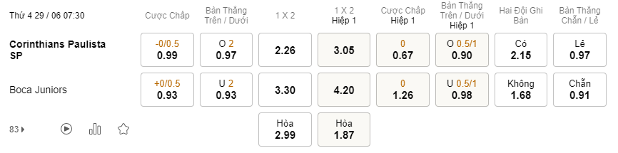 Tỉ lệ kèo Corinthians vs Boca Juniors