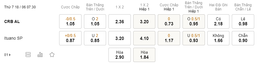 Soi kèo hiệp 1 CRB vs Ituano: 0.73*0*1.17