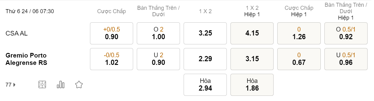 Soi kèo hiệp 1 CSA vs Gremio: 1.26*0*0.67