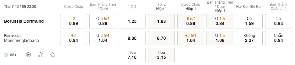 Nhận định, soi kèo Dortmund vs Gladbach 23h30 ngày 13/05/2023