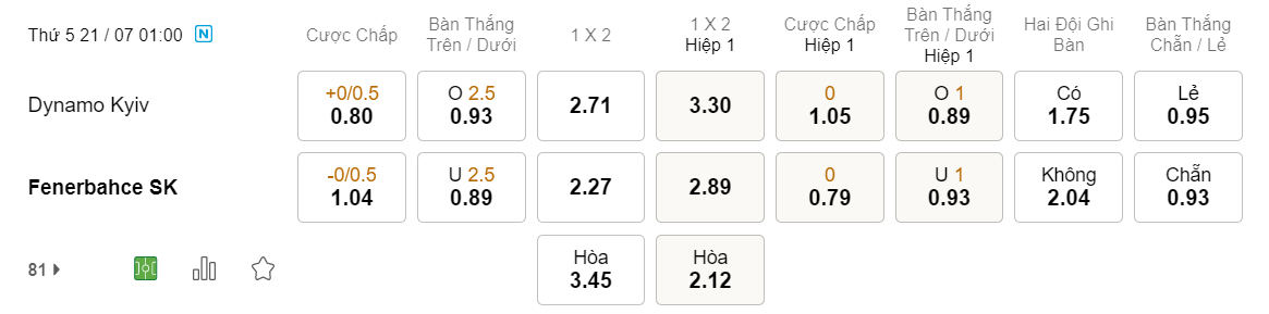 Soi kèo hiệp 1 Dynamo Kyiv vs Fenerbahce: 1.05*0*0.79