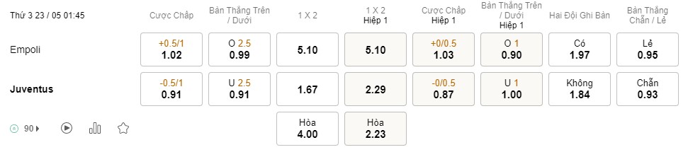 Nhận định, soi kèo Empoli vs Juventus 01h45 ngày 23/05/2023