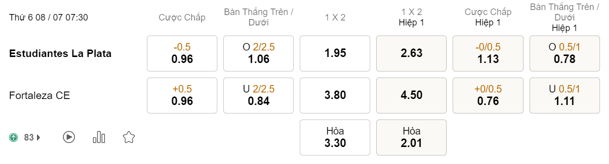 Tỉ lệ kèo Estudiantes vs Fortaleza