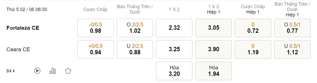Xét lịch sử đối đầu giữa hai đội, 5 trận gần nhất đều đã chứng kiến bàn thắng tới ngay ở 45 phút thi đấu đầu tiên. Trong đó có tới 9 bàn thắng của Ceara, kết hợp cùng khả năng phòng ngự hạn chế của Fortaleza, khả năng cao đội khách sẽ sớm tìm được điều mình cần ngay ở 45 phút đầu tiên.