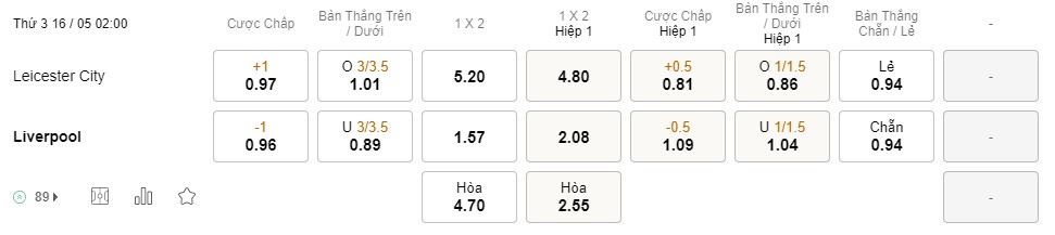Soi kèo tài xỉu Leicester vs Liverpool: 1.01*3/3.5*0.89