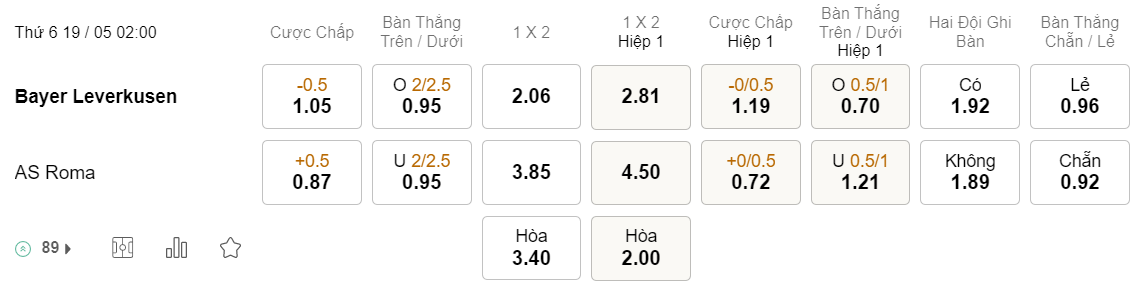 Soi kèo hiệp 1 Leverkusen vs Roma: 1.19*0/0.5*0.72