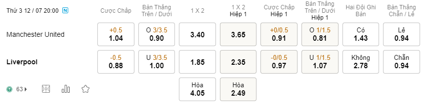Soi kèo châu Á MU vs Liverpool: 1.04*0.5*0.88