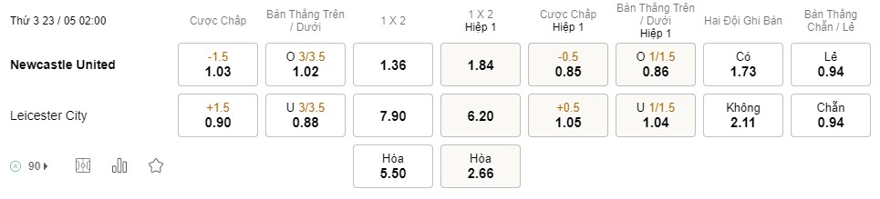 Soi kèo châu Á Newcastle vs Leicester: 1.03*1.5*0.90