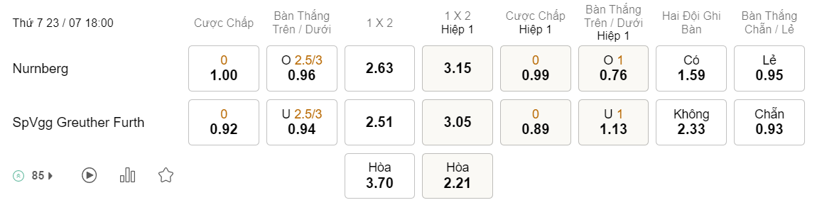 Soi kèo hiệp 1 Nurnberg vs Greuther Furth: 0.99*0*0.89