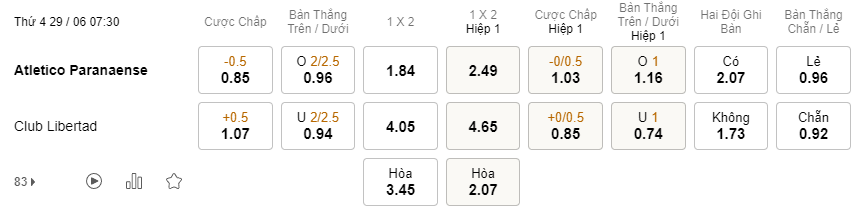 Soi kèo châu Á Paranaense vs Libertad: 0.85*0.5*1.07