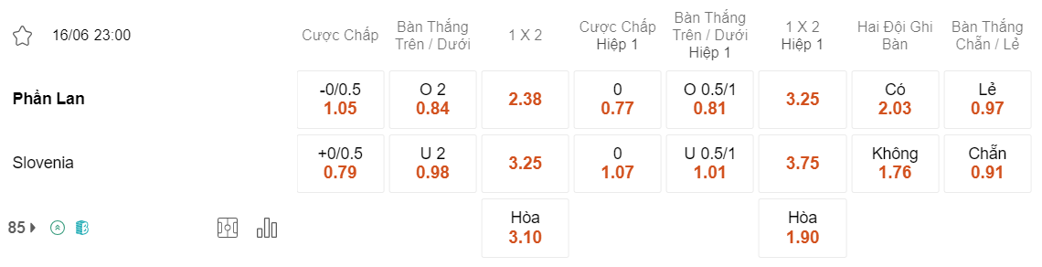 Tỉ lệ kèo Phần Lan vs Slovenia