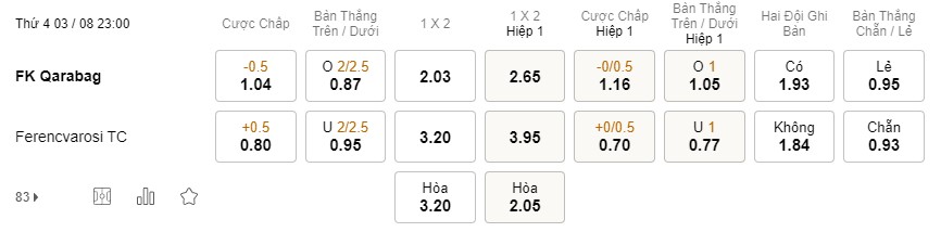 Tỉ lệ kèo Qarabag vs Ferencvarosi