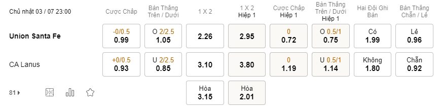 Soi kèo tài xỉu Union vs Lanus: 1.05*2/2.5*0.85