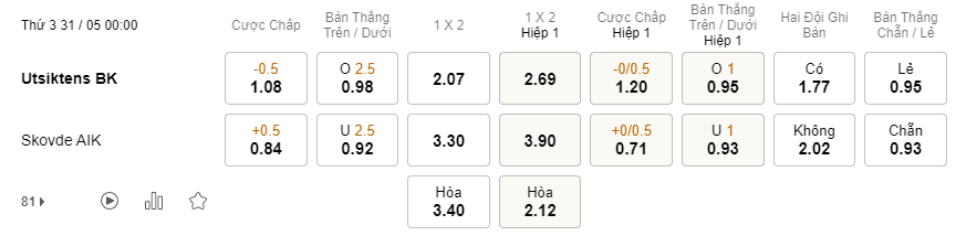 Trong khi đó nhìn sang Skovde, chỉ giành được duy nhất 1 chiến thắng, hòa 1 và phải nhận 2 thất bại trong 5 trận gần nhất đã đấu. Thêm một yếu tố nữa cũng có thể kể tới đó là lịch sử đối đầu đang nghiêng về phía đội chủ nhà khi Utsiktens đã có 2 chiến thắng và 3 trận hòa trong 5 lần gặp nhau gần nhất. Vì vậy các chuyên gia nhận định, nếu chơi đúng với phong độ, đội chủ nhà khả năng cao sẽ có chiến thắng cuối cùng.