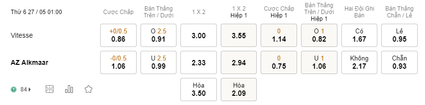 Soi kèo Vitesse vs AZ 01h00 27/5/2022