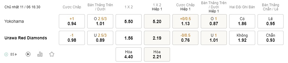 Soi kèo hiệp 1 Yokohama vs Urawa Red: 1.13*0/0.5*0.76